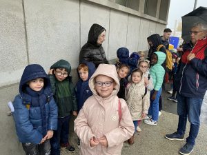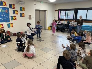 Capuche sur la tête, ils ont marché jusqu’à la place de la liberté, puis ils ont pris le bus, ligne 12, jusqu’à Guilers. Nous sommes attendus avec impatience et un accueil très chaleureux nous est réservé dans la grande salle de motricité.