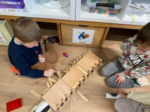 Après un temps de jeu et de découverte de la nouvelle cour végétalisée des maternelles, les élèves reforment leurs équipes et le feu vert est donné pour le temps d’atelier. Au programme, 3 ateliers placés sous le signe de la coopération, de l’entraide et de la bienveillance :