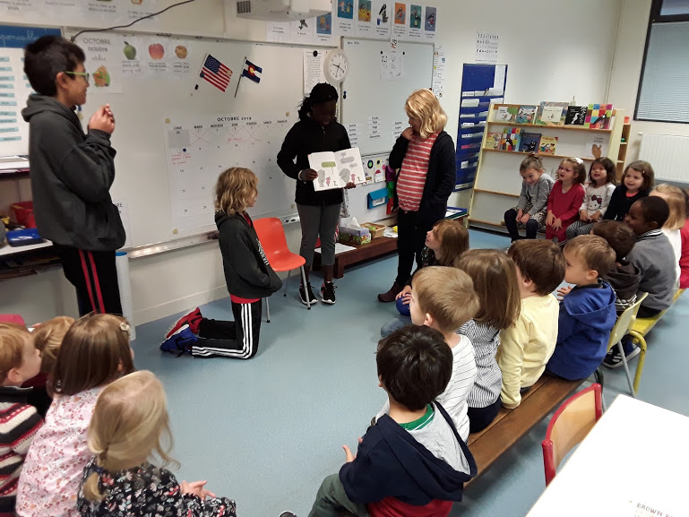 Les élèves de Denver sont venus lire en anglais l’album « Brown Bear, what do you see? » dans la classe de TPS/PS.
