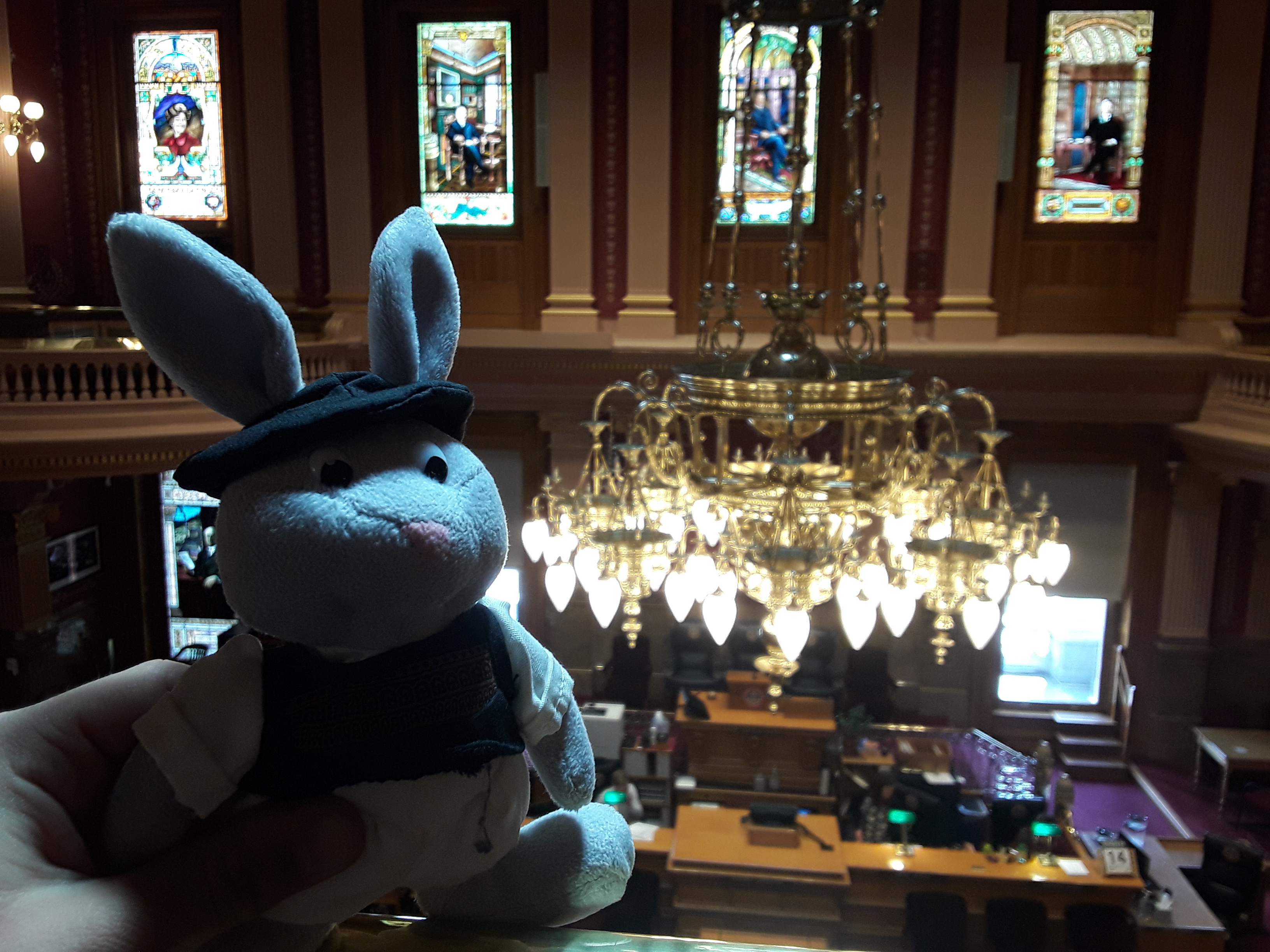 Ti Louis et les élèves découvrent la Chambre des représentants et le Sénat.