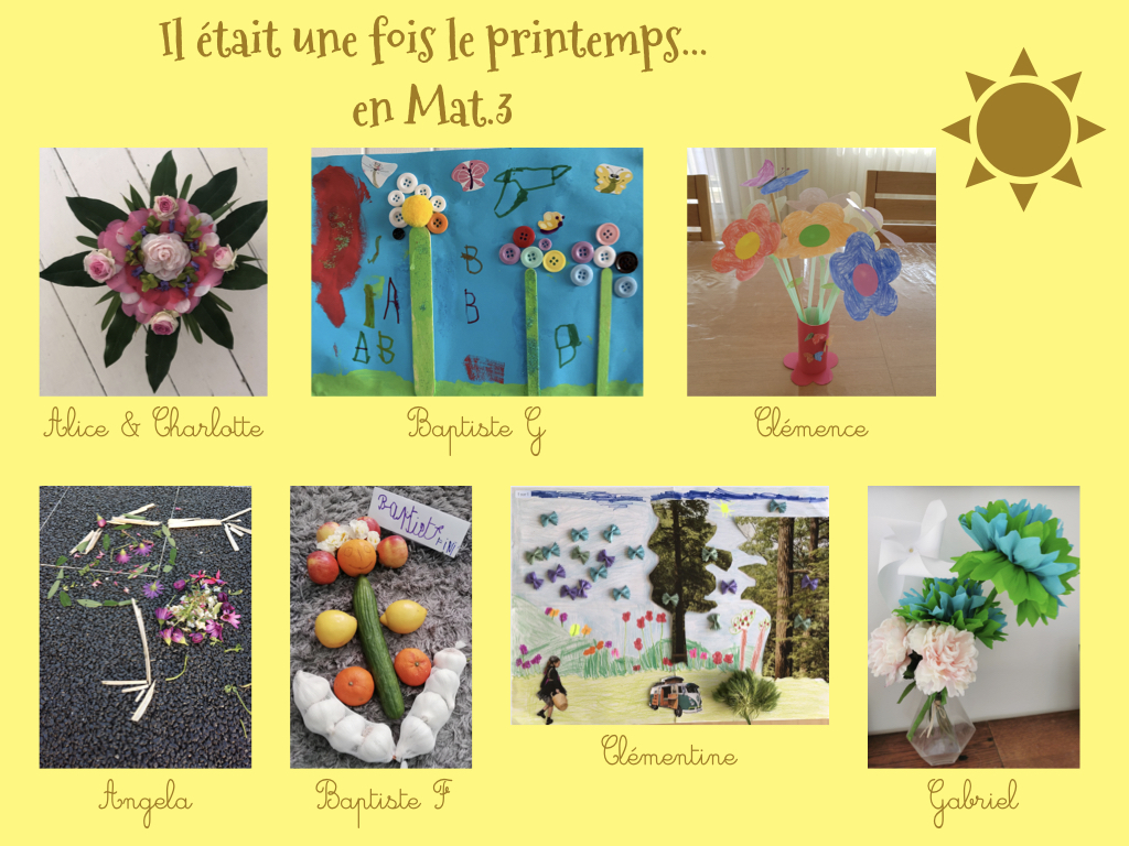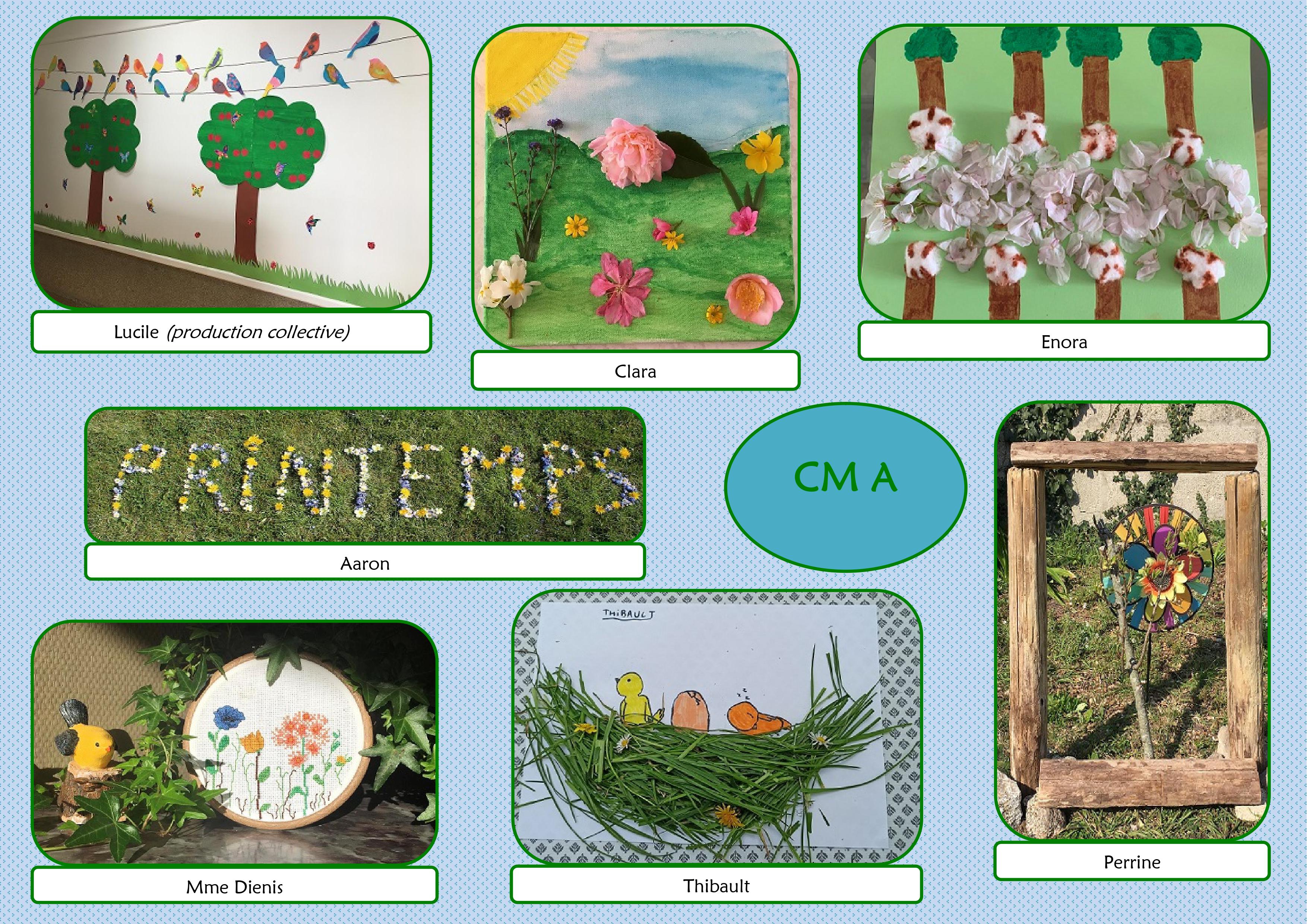 La deuxième semaine d’école à distance était placée sous le signe du printemps grâce au soleil très présent mais aussi à travers les réalisations des élèves qui ont participé au défi artistique, commun à toute l’école.