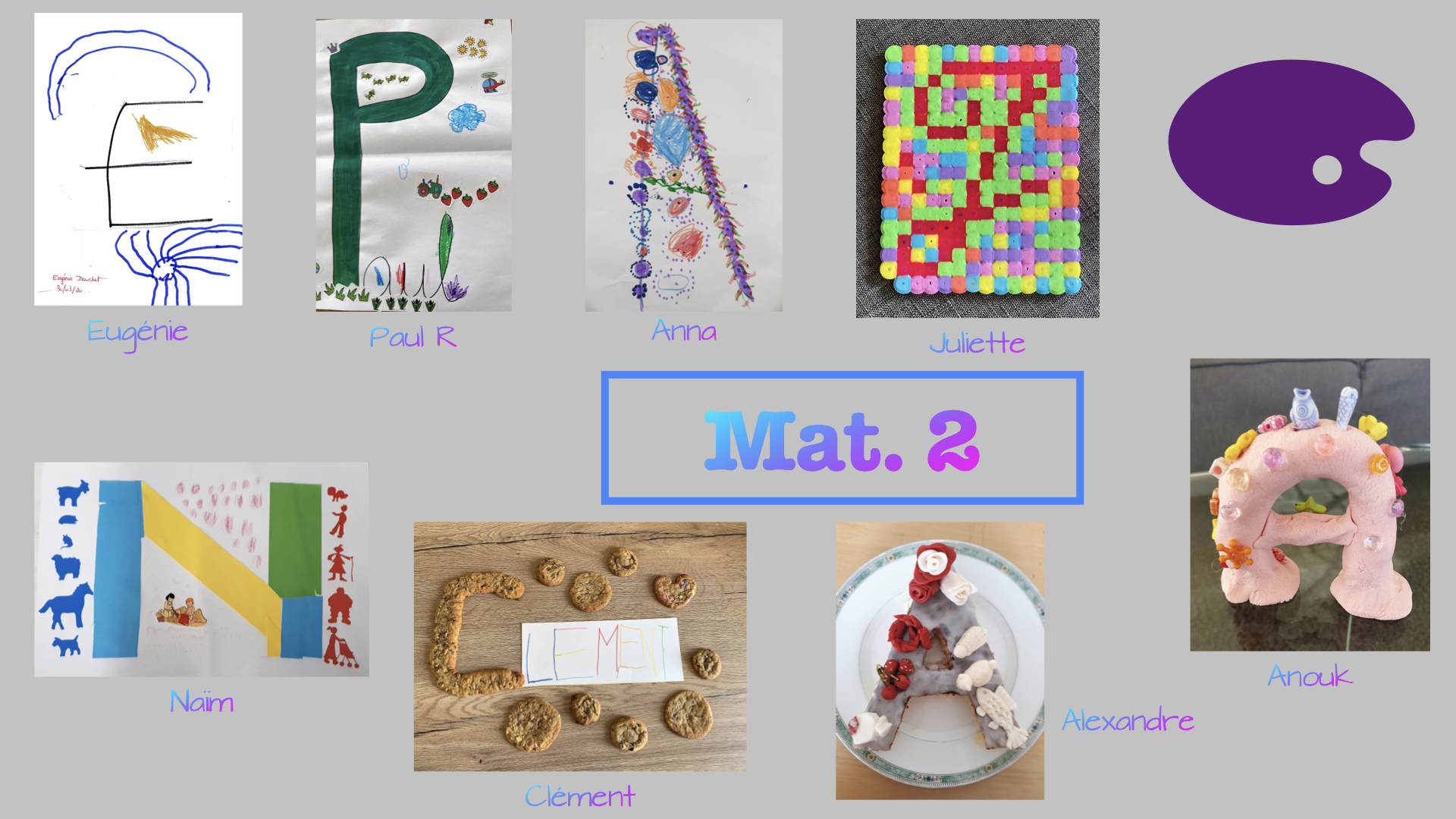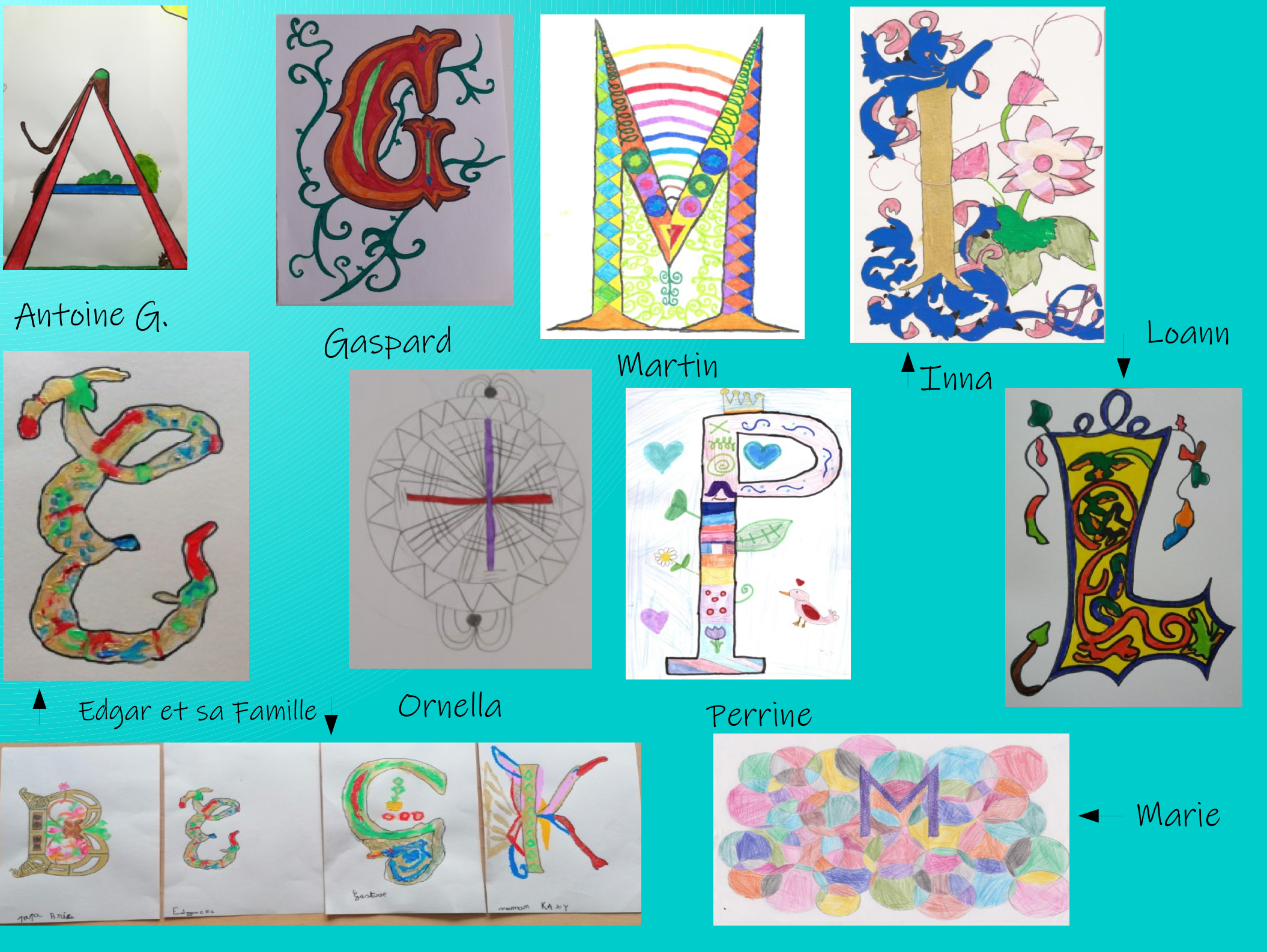 La semaine dernière, l’ensemble de l’école a participé à un nouveau défi artistique autour de l’initiale de son prénom. L’occasion pour les grands de travailler sur la technique de l’enluminure et pour les plus jeunes d’utiliser différents supports et matériaux pour réaliser son oeuvre.