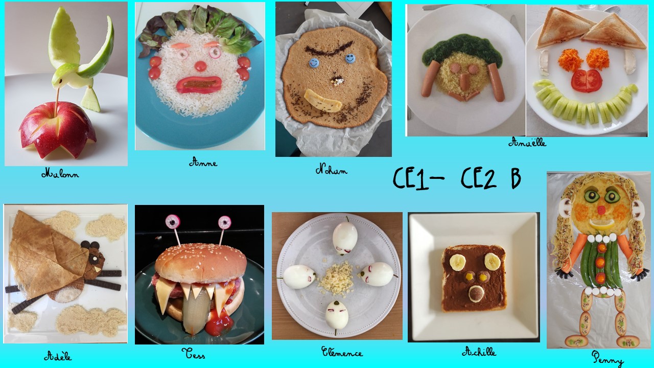 À l’heure où les GS, CP et CM2 retrouvent le chemin de leurs classes, il est temps de revenir sur le défi artistique qui a occupé les élèves après les vacances de Pâques : créer une assiette appétissante et amusante.