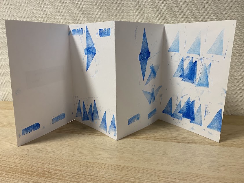 Lors de cette 1ère séance, les élèves ont créé un leporello, un livre- accordéon, avec des tampons pour raconter une histoire.