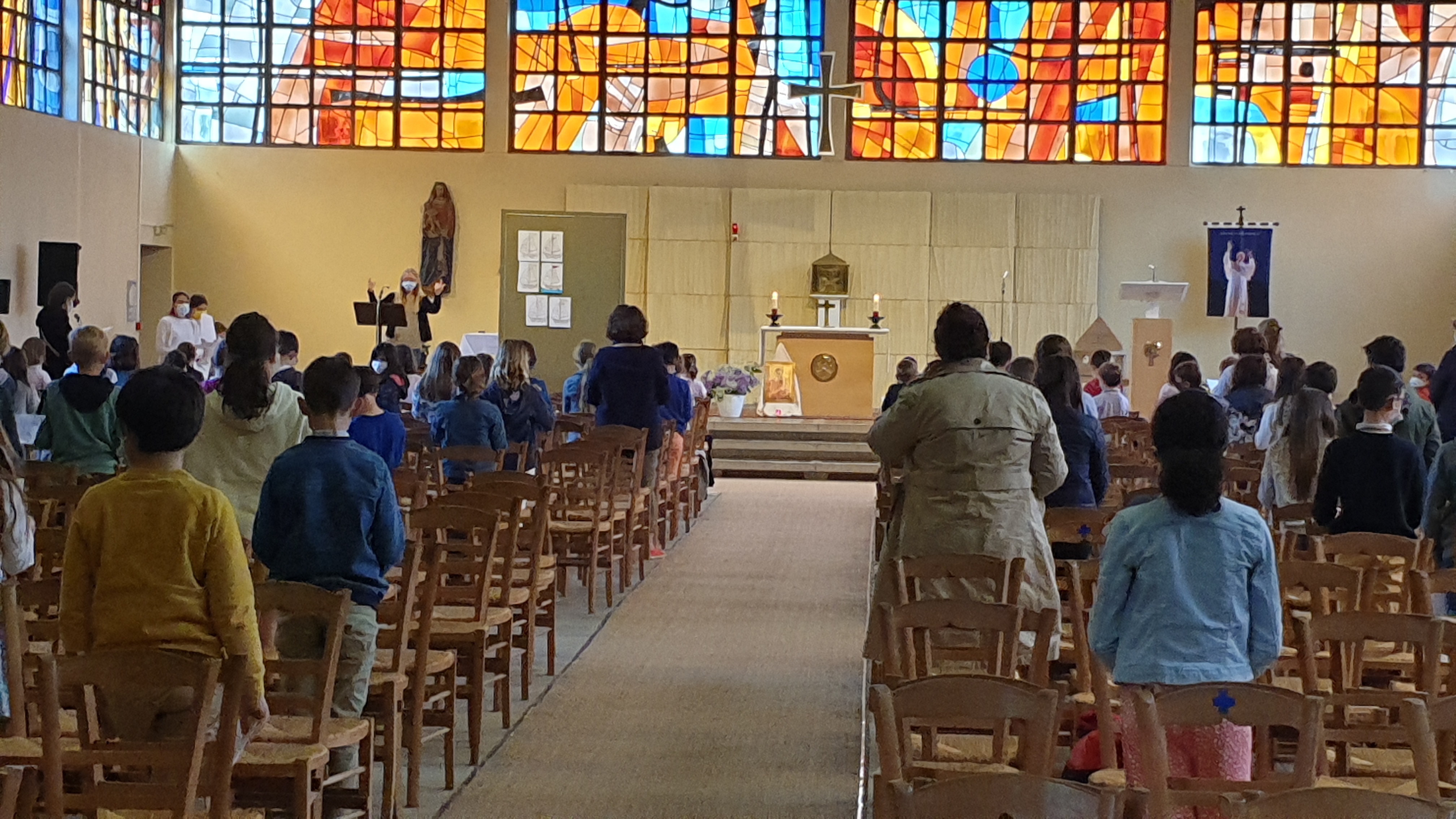 Lors d’une célébration dans la chapelle de l’église pour les élèves de primaire ou dans les classes pour ceux de maternelle, le moment était venu de se recueillir et de penser à toutes les situations où Dieu était à nos côtés : lorsqu’il fallait affronter des difficultés dans le travail, être rassuré lors de la rentrée scolaire, se montrer tolérant et solidaire…